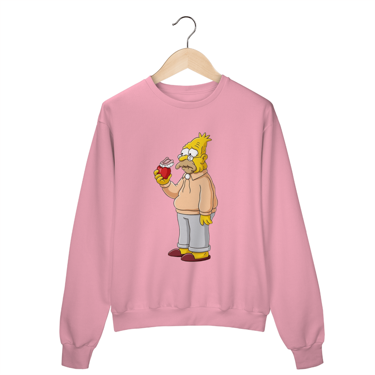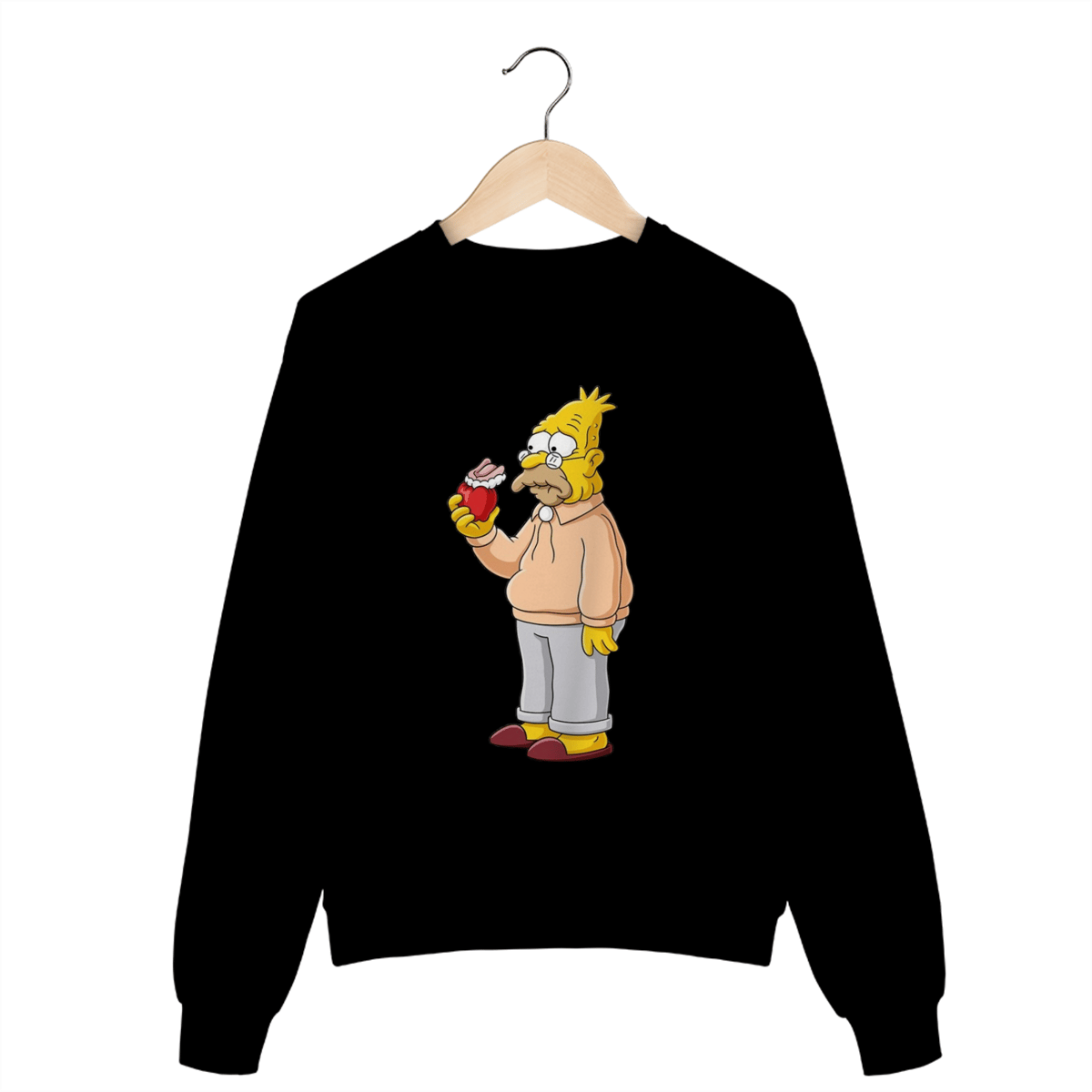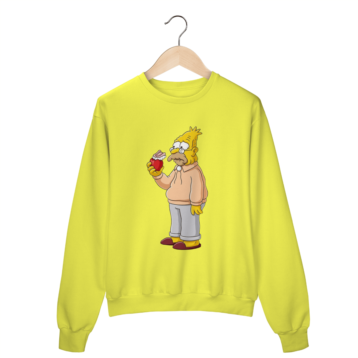 Esse moletom do Abraham Simpson II, com a clássica dentadura presa numa maçã, é para quem vive entre momentos de 'na minha época...' e boas gargalhadas! Feito para ser tão confortável quanto os cochilos do vovô e tão icônico quanto suas histórias intermináveis.