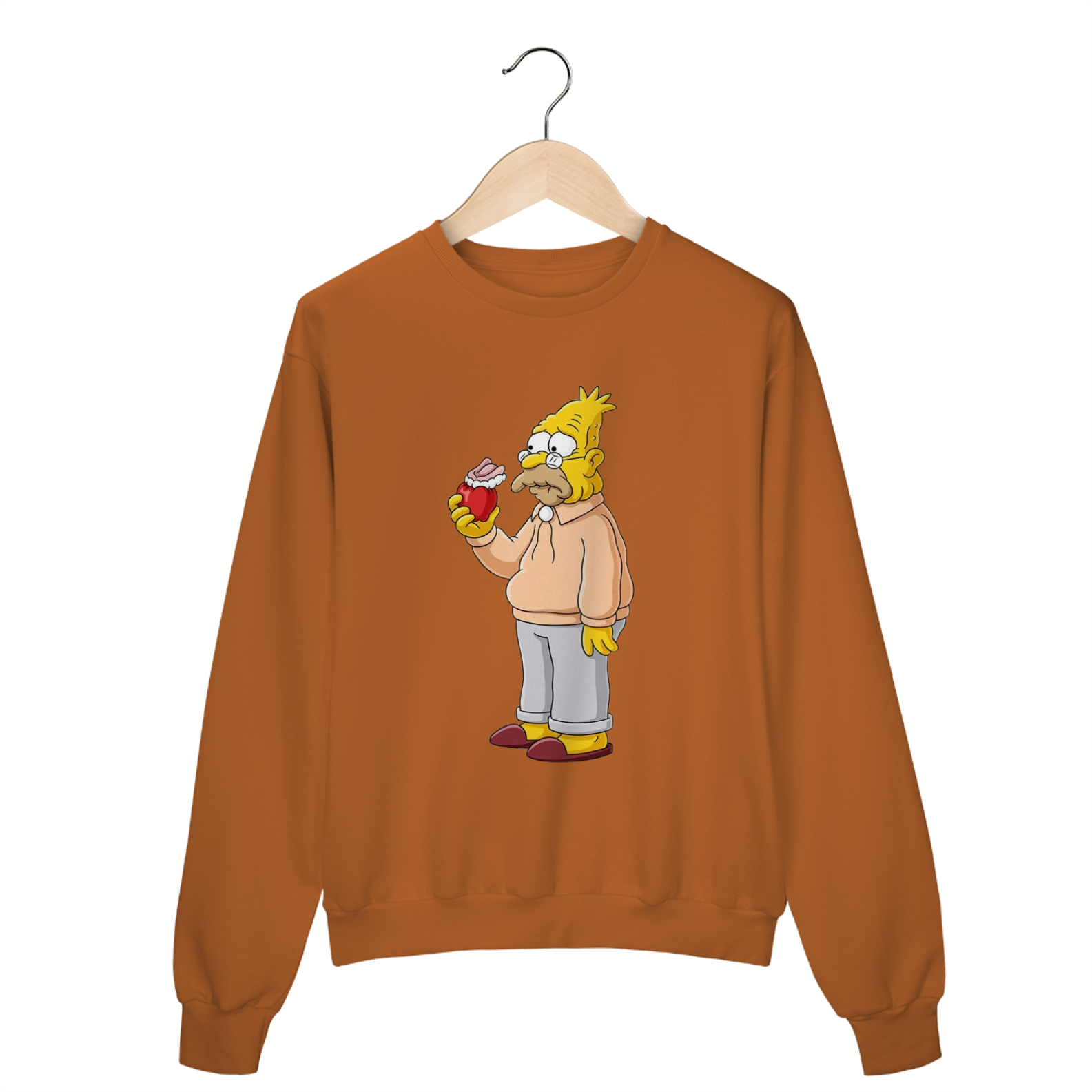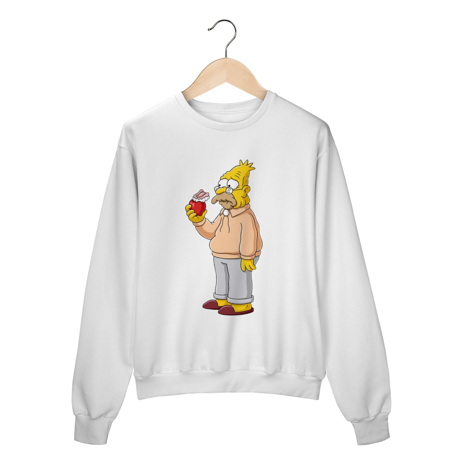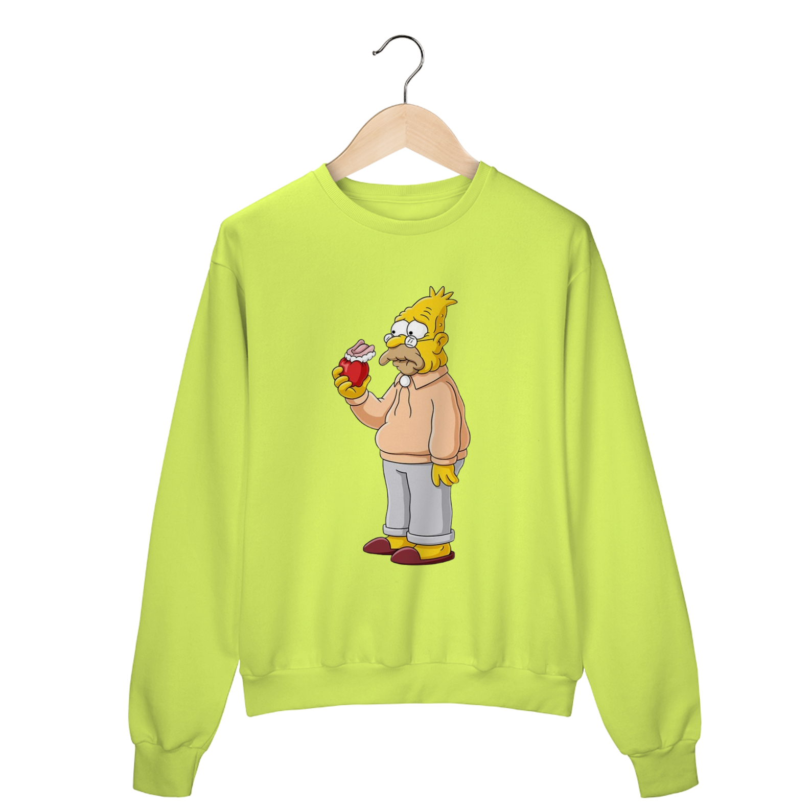 Esse moletom do Abraham Simpson II, com a clássica dentadura presa numa maçã, é para quem vive entre momentos de 'na minha época...' e boas gargalhadas! Feito para ser tão confortável quanto os cochilos do vovô e tão icônico quanto suas histórias intermináveis.