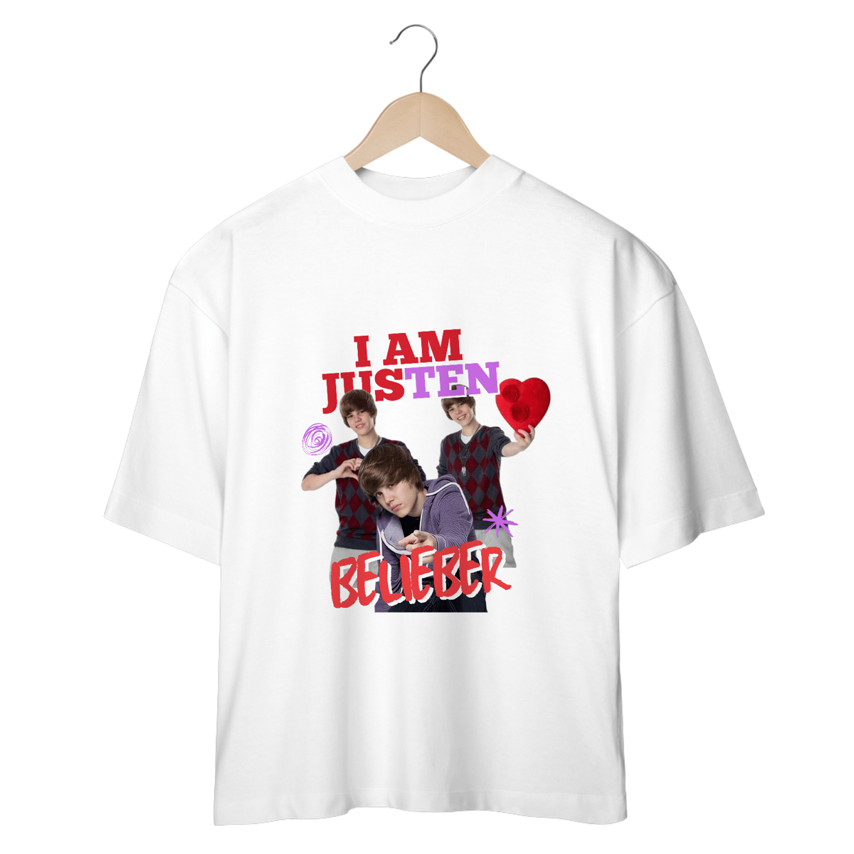 Prepare-se para arrasar com o Justin Bieber no auge do seu reinado adolescente e a frase que marca o mundo das fãs: "I am Justen Belieber" – porque, claro, a Sabrina Sato nunca vai esquecer aquele "Justen" (a gente te entende, Biebs!).